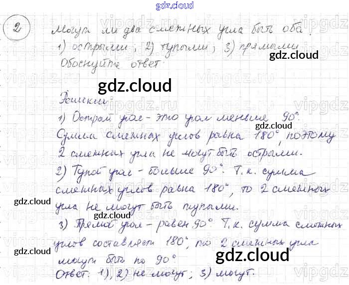 Ответы к §2. Смежные и вертикальные углы по Геометрии 7, 8, 9 класс Учебник Погорелов Просвещение