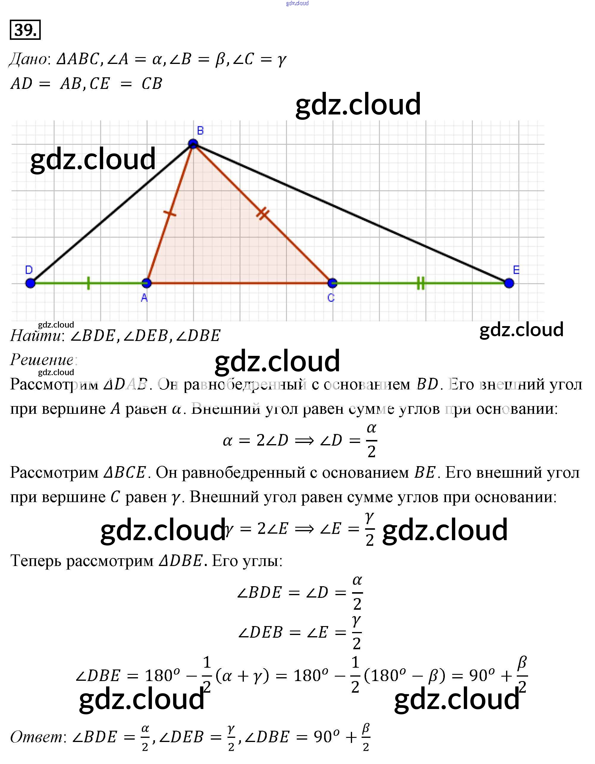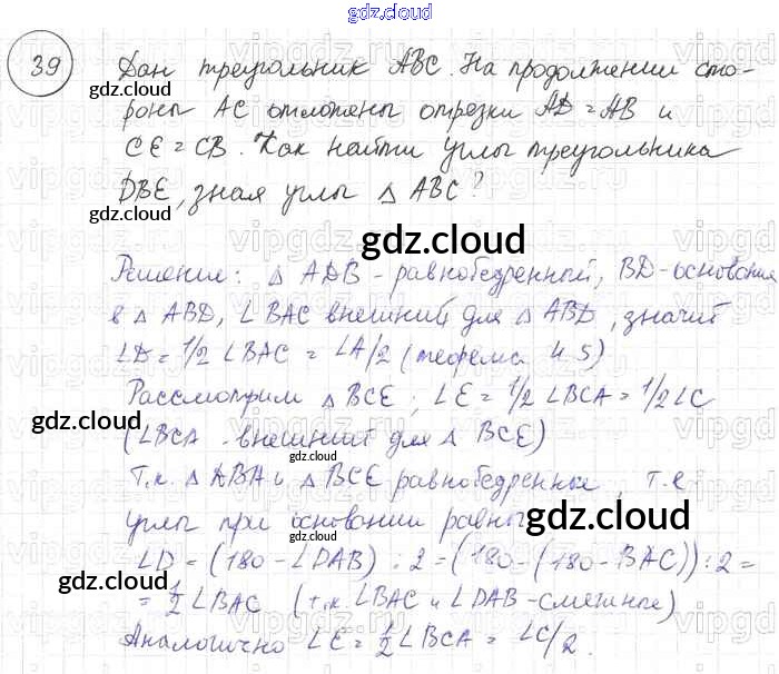 Ответ на задание 39 Учебник Геометрия за 7, 8, 9 (седьмой, восьмой, девятый) класс Погорелов 2014