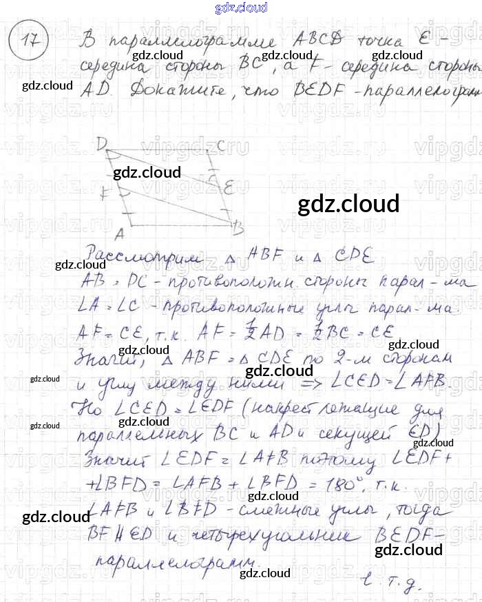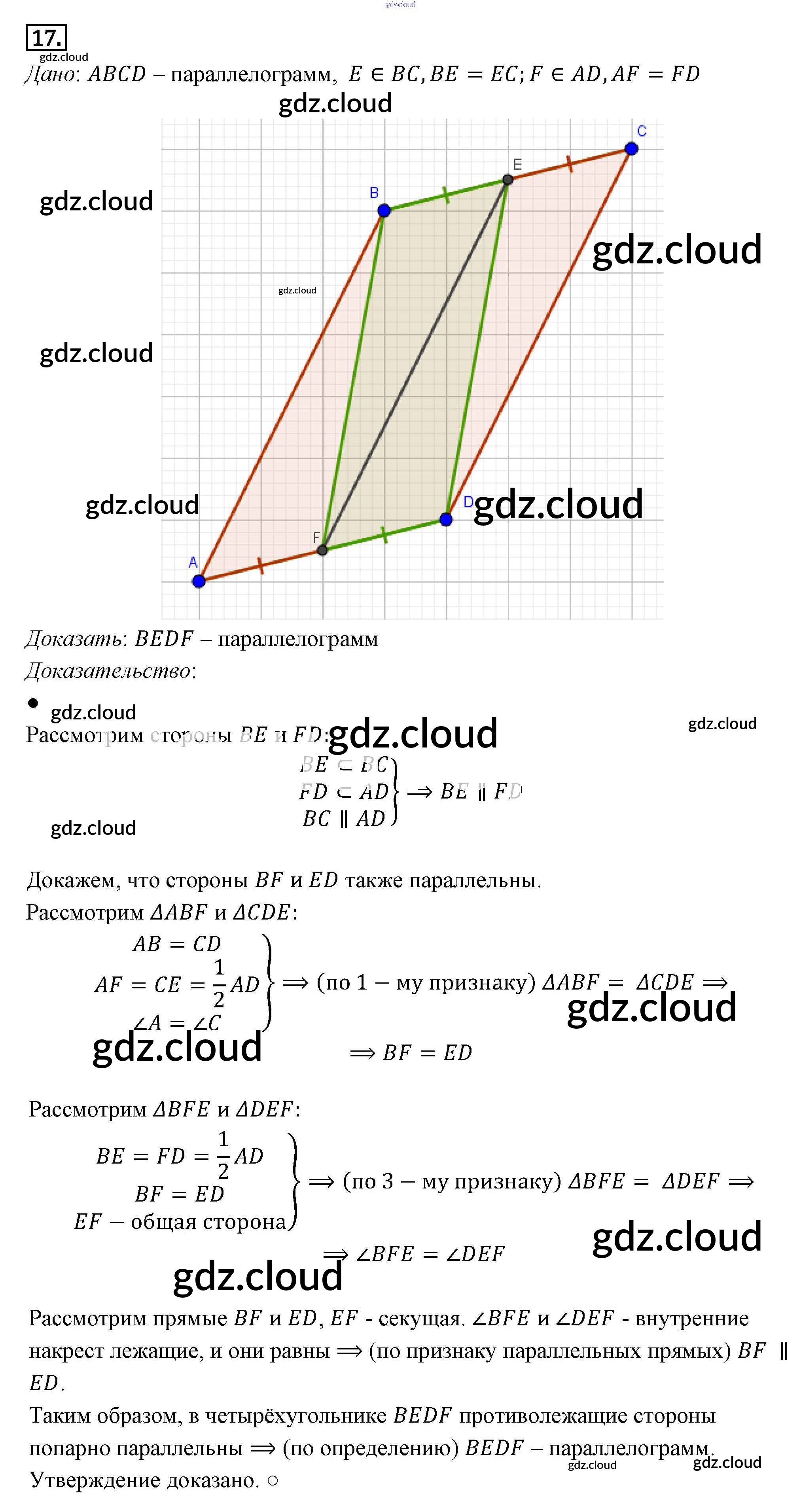 Ответ на задание 17 Учебник Геометрия за 7, 8, 9 (седьмой, восьмой, девятый) класс Погорелов 2014
