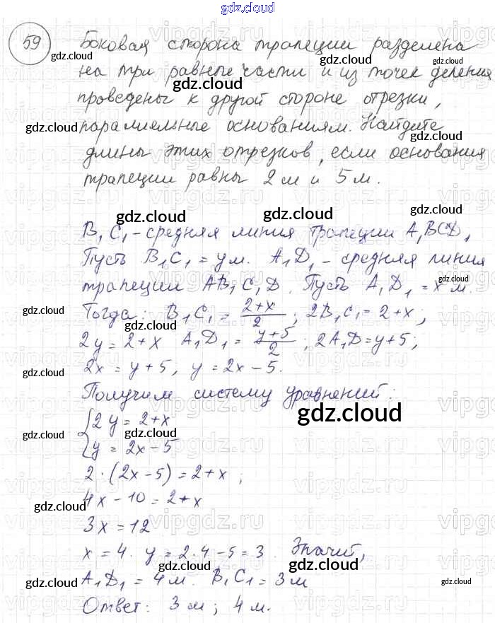 Ответ на задание 59 Учебник Геометрия за 7, 8, 9 (седьмой, восьмой, девятый) класс Погорелов 2014