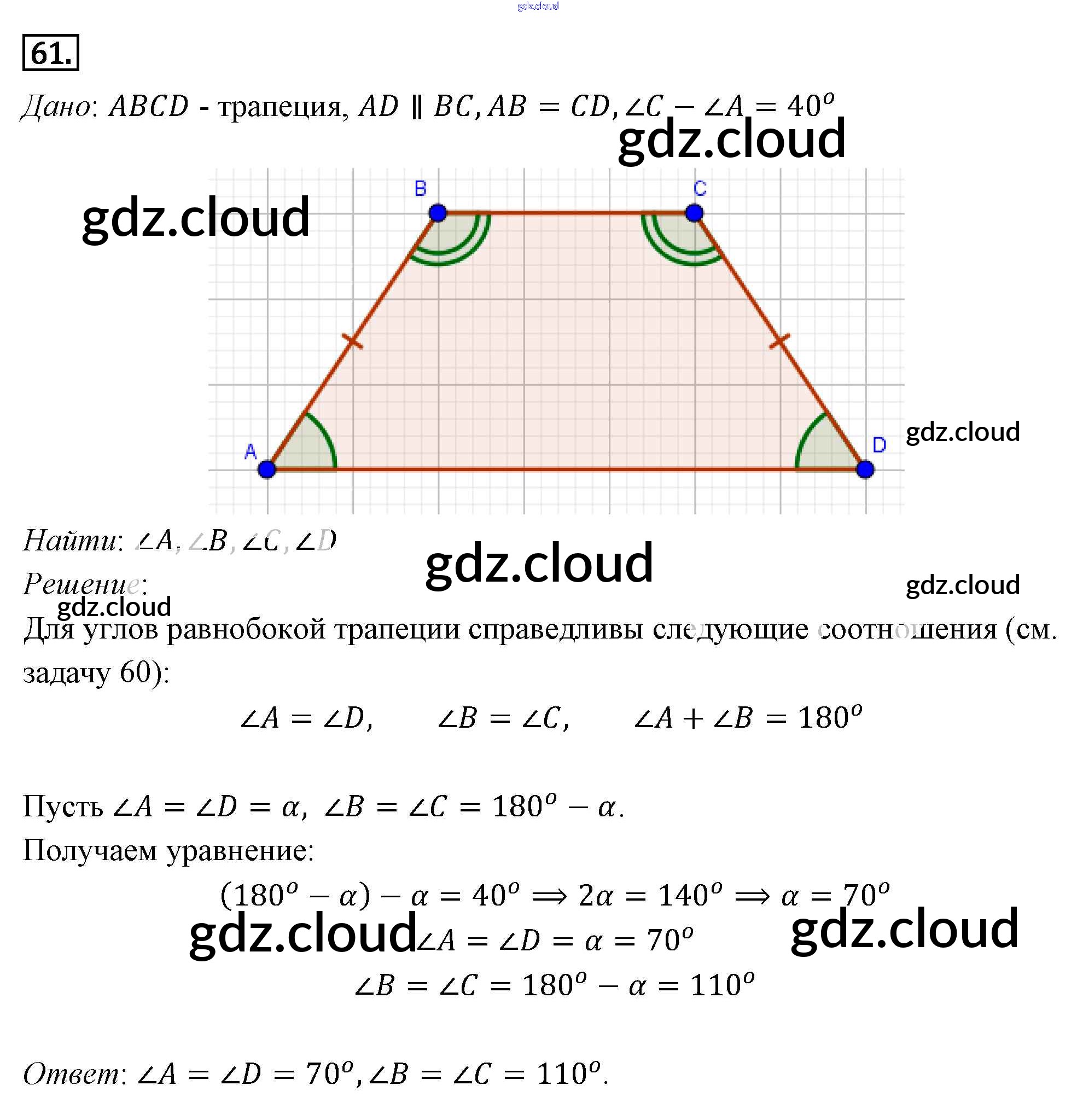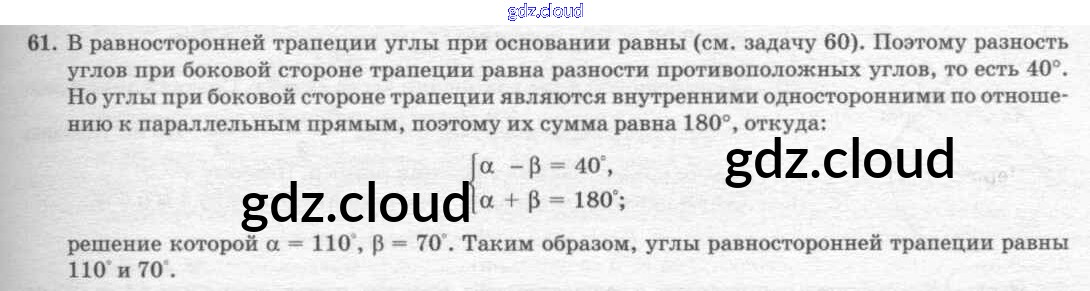 Ответ на задание 61 Учебник Геометрия за 7, 8, 9 (седьмой, восьмой, девятый) класс Погорелов 2014