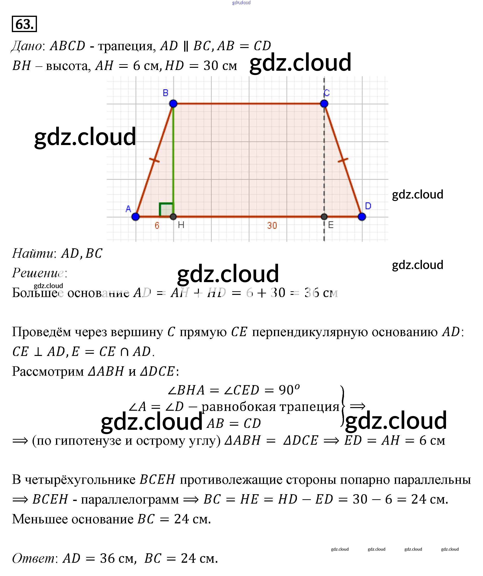 Ответ на задание 63 Учебник Геометрия за 7, 8, 9 (седьмой, восьмой, девятый) класс Погорелов 2014