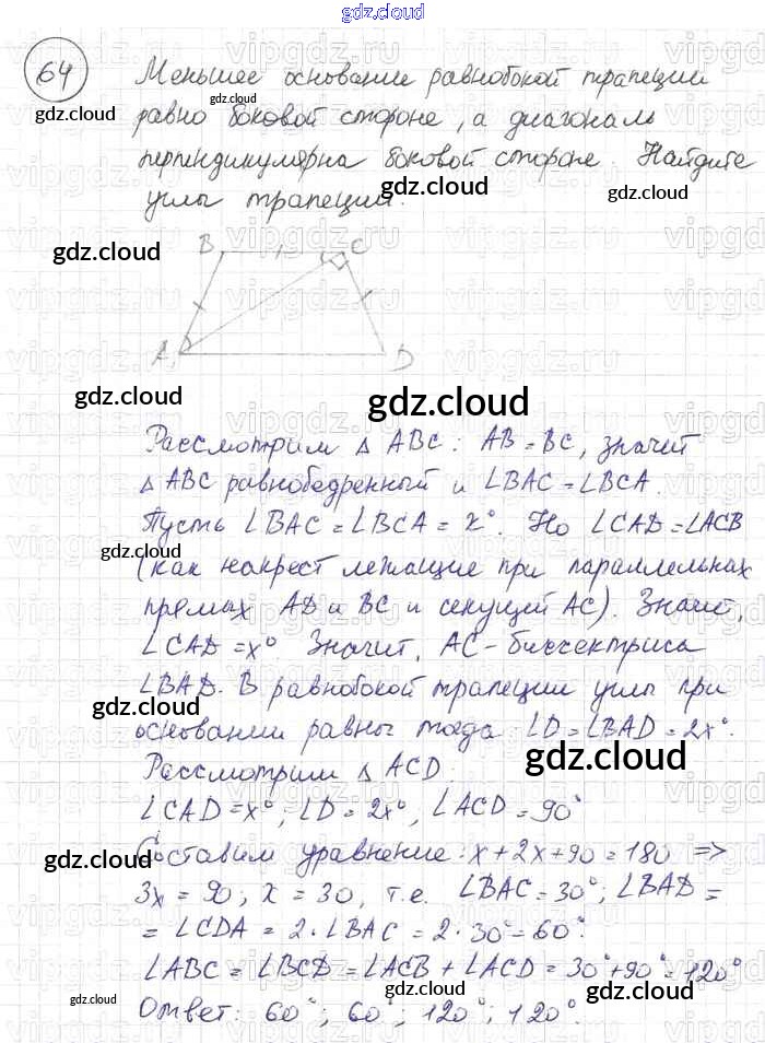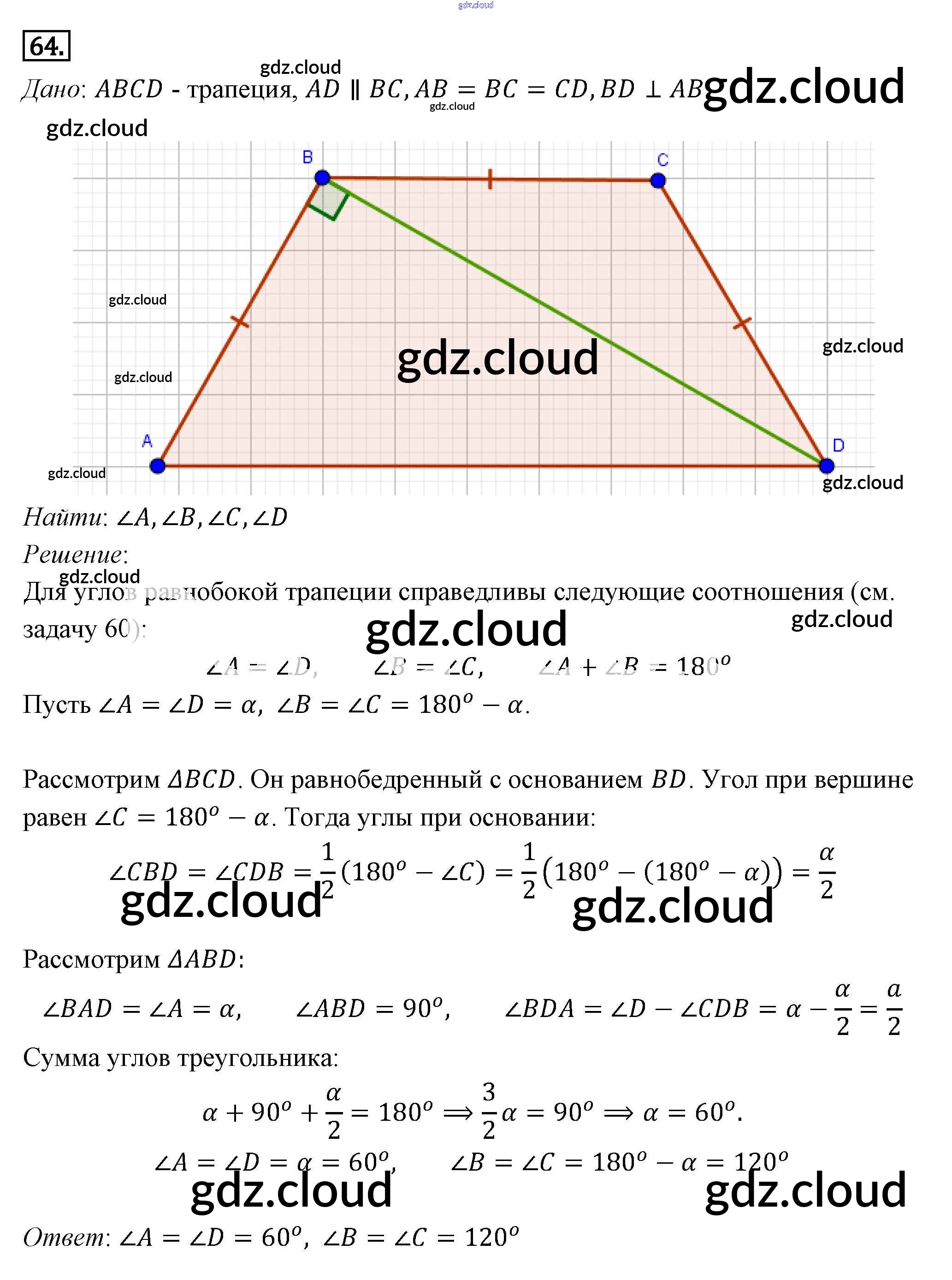 Ответ на задание 64 Учебник Геометрия за 7, 8, 9 (седьмой, восьмой, девятый) класс Погорелов 2014