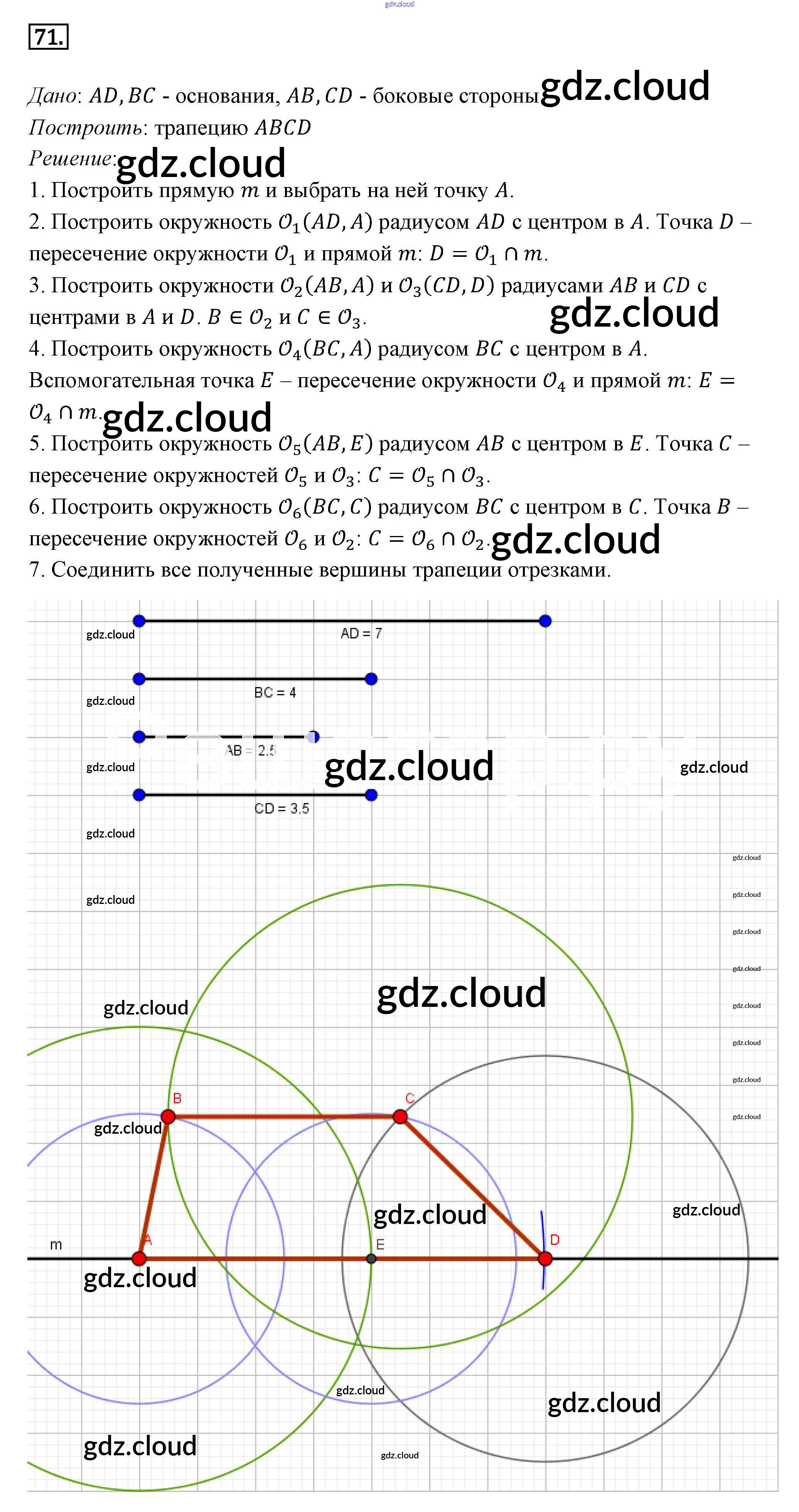 Ответ на задание 71 Учебник Геометрия за 7, 8, 9 (седьмой, восьмой, девятый) класс Погорелов 2014