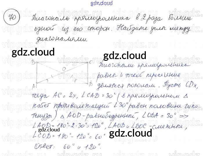 Ответ на задание 70 Учебник Геометрия за 7, 8, 9 (седьмой, восьмой, девятый) класс Погорелов 2014