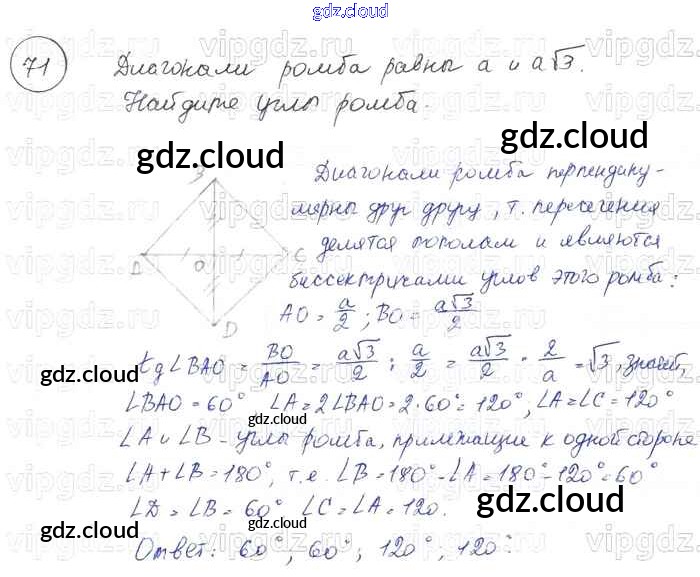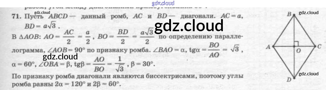 Ответ на задание 71 Учебник Геометрия за 7, 8, 9 (седьмой, восьмой, девятый) класс Погорелов 2014