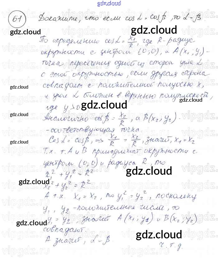 Ответ на задание 61 Учебник Геометрия за 7, 8, 9 (седьмой, восьмой, девятый) класс Погорелов 2014