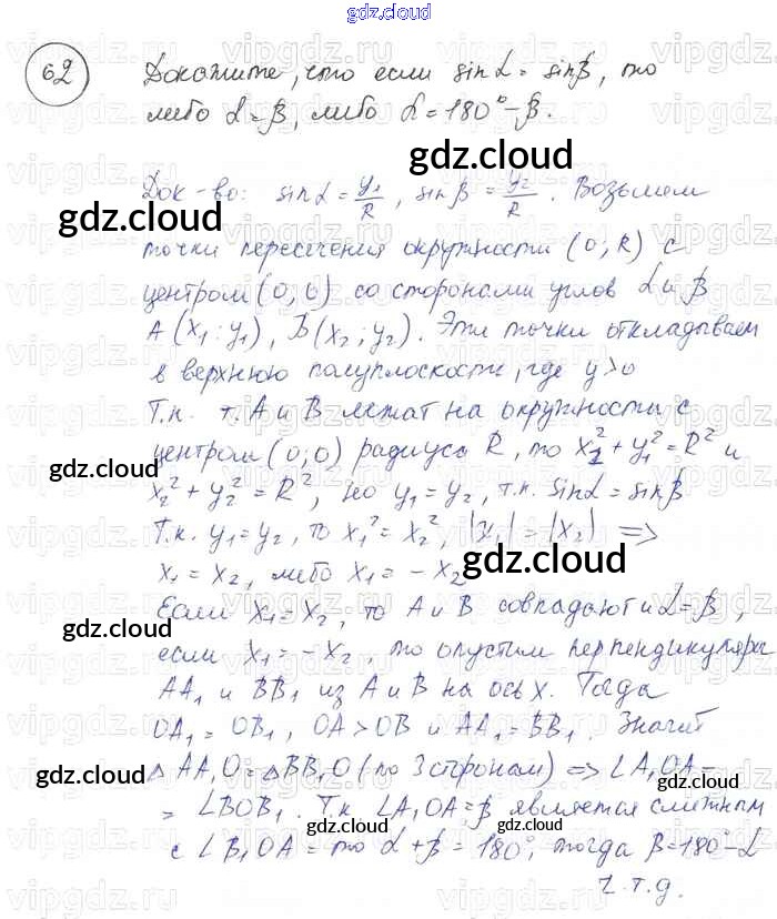Ответ на задание 62 Учебник Геометрия за 7, 8, 9 (седьмой, восьмой, девятый) класс Погорелов 2014