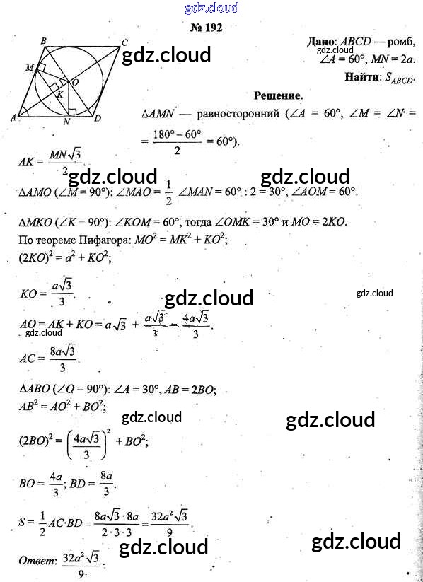 Ответ на задание 192 Учебник Геометрия за 9 (девятый) класс Шлыков 2012 онлайн и без номера телефона.