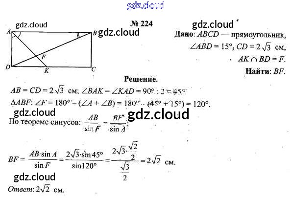 Ответ на задание 224 Учебник Геометрия за 9 (девятый) класс Шлыков 2012 онлайн и без номера телефона.