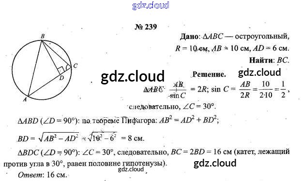 Ответ на задание 239 Учебник Геометрия за 9 (девятый) класс Шлыков 2012 онлайн и без номера телефона.