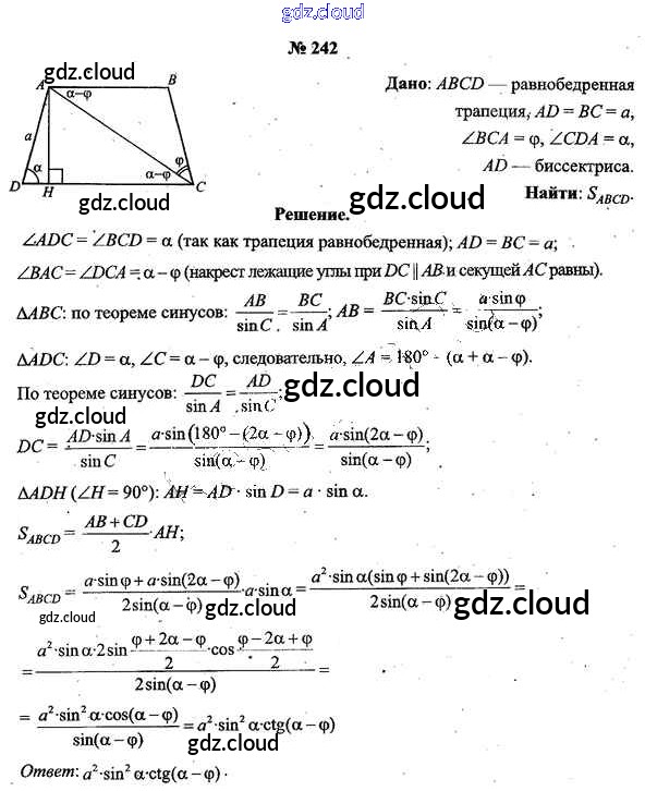 Ответ на задание 242 Учебник Геометрия за 9 (девятый) класс Шлыков 2012 онлайн и без номера телефона.