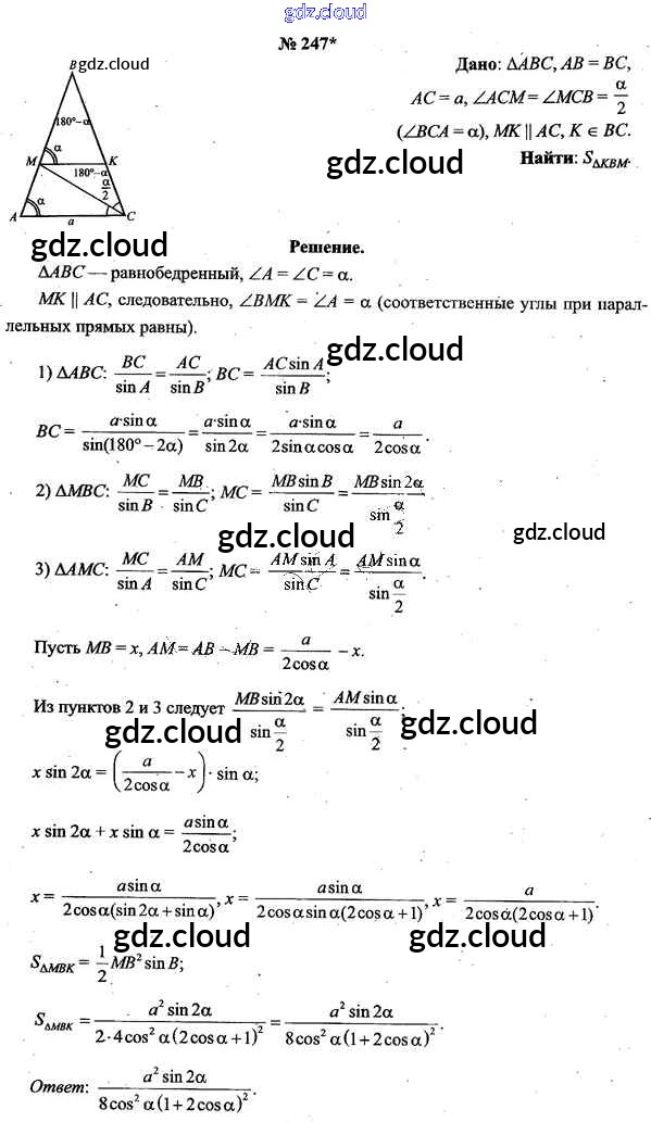 Ответ на задание 247 Учебник Геометрия за 9 (девятый) класс Шлыков 2012 онлайн и без номера телефона.
