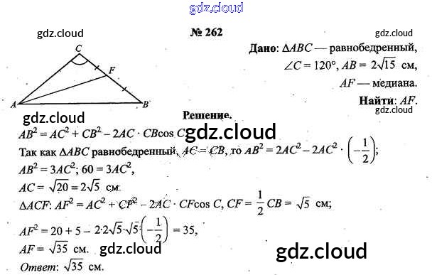 Ответ на задание 262 Учебник Геометрия за 9 (девятый) класс Шлыков 2012 онлайн и без номера телефона.