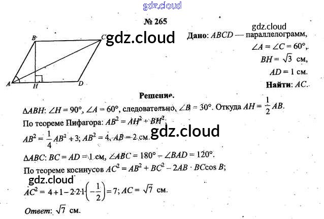 Ответ на задание 265 Учебник Геометрия за 9 (девятый) класс Шлыков 2012 онлайн и без номера телефона.