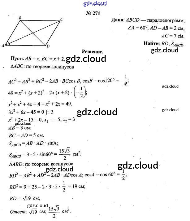 Ответ на задание 271 Учебник Геометрия за 9 (девятый) класс Шлыков 2012 онлайн и без номера телефона.