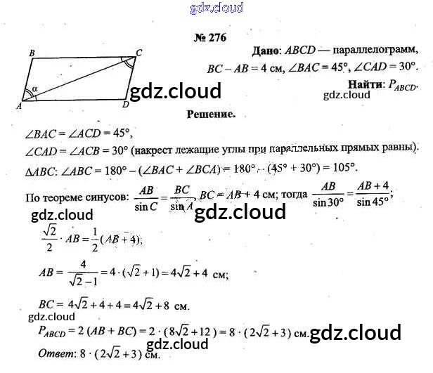 Ответ на задание 276 Учебник Геометрия за 9 (девятый) класс Шлыков 2012 онлайн и без номера телефона.