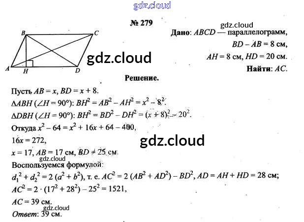Ответ на задание 279 Учебник Геометрия за 9 (девятый) класс Шлыков 2012 онлайн и без номера телефона.