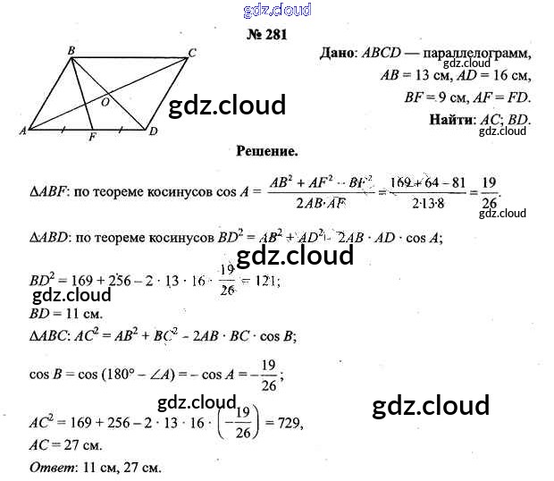 Ответ на задание 281 Учебник Геометрия за 9 (девятый) класс Шлыков 2012 онлайн и без номера телефона.