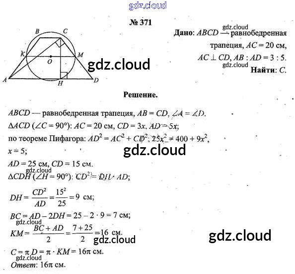 Ответ на задание 371 Учебник Геометрия за 9 (девятый) класс Шлыков 2012 онлайн и без номера телефона.