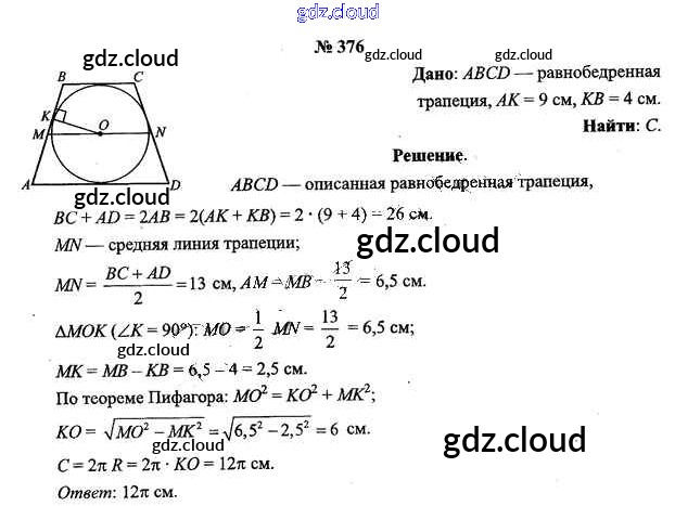 Ответ на задание 376 Учебник Геометрия за 9 (девятый) класс Шлыков 2012 онлайн и без номера телефона.