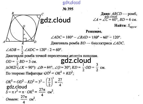 Ответ на задание 395 Учебник Геометрия за 9 (девятый) класс Шлыков 2012 онлайн и без номера телефона.