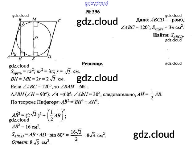 Ответ на задание 396 Учебник Геометрия за 9 (девятый) класс Шлыков 2012 онлайн и без номера телефона.