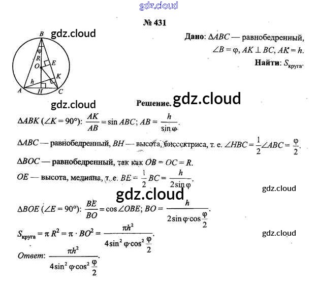 Ответ на задание 431 Учебник Геометрия за 9 (девятый) класс Шлыков 2012 онлайн и без номера телефона.