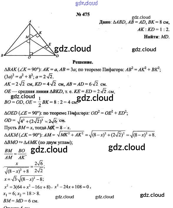 Ответ на задание 475 Учебник Геометрия за 9 (девятый) класс Шлыков 2012 онлайн и без номера телефона.