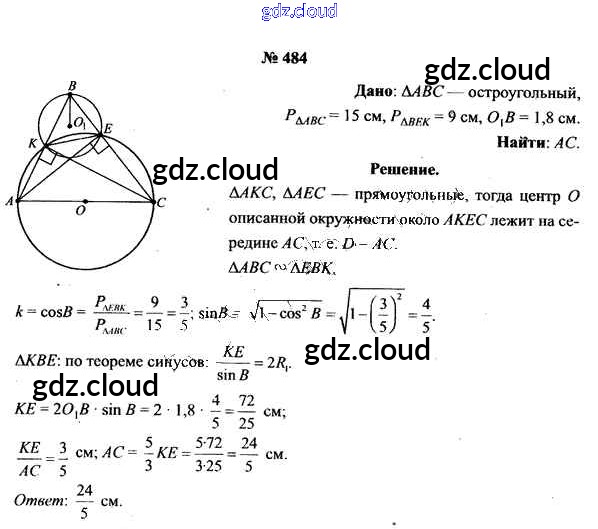 Ответ на задание 484 Учебник Геометрия за 9 (девятый) класс Шлыков 2012 онлайн и без номера телефона.