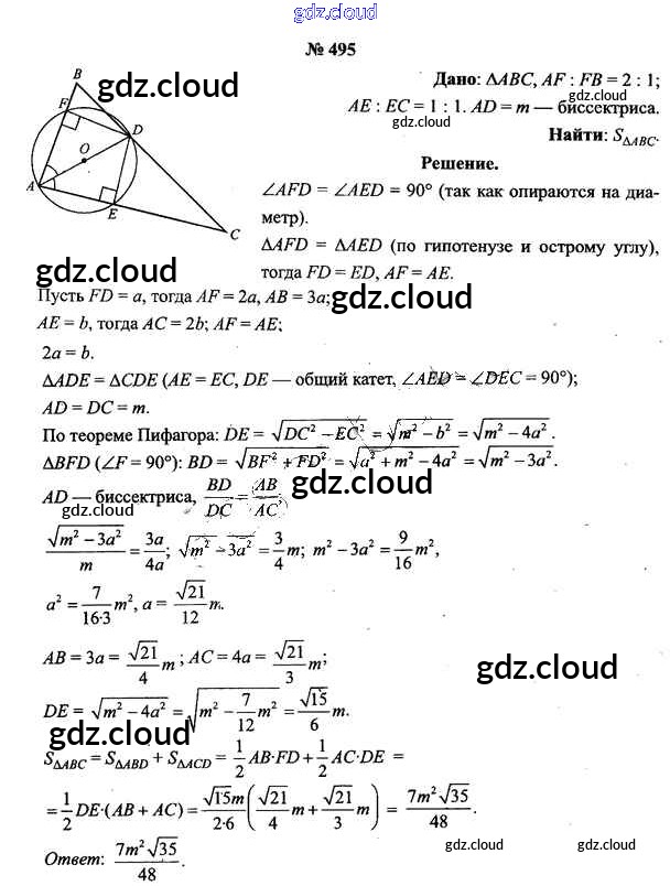 Ответ на задание 495 Учебник Геометрия за 9 (девятый) класс Шлыков 2012 онлайн и без номера телефона.