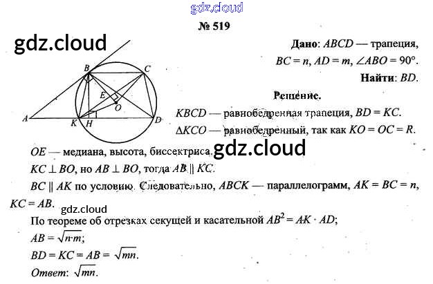 Ответ на задание 519 Учебник Геометрия за 9 (девятый) класс Шлыков 2012 онлайн и без номера телефона.