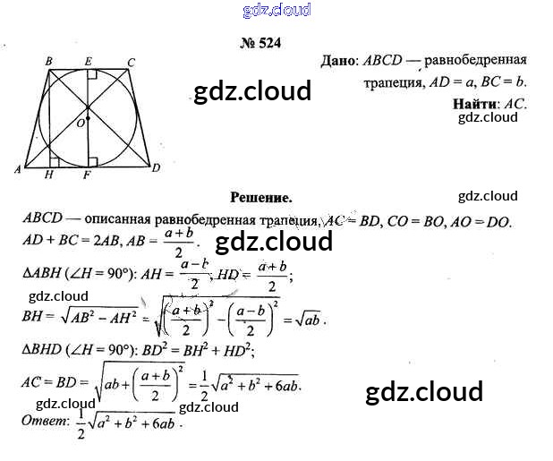 Ответ на задание 524 Учебник Геометрия за 9 (девятый) класс Шлыков 2012 онлайн и без номера телефона.
