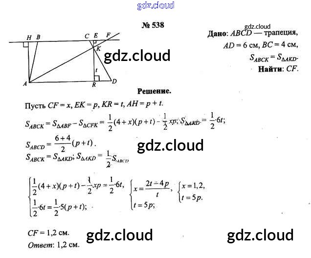 Ответ на задание 538 Учебник Геометрия за 9 (девятый) класс Шлыков 2012 онлайн и без номера телефона.