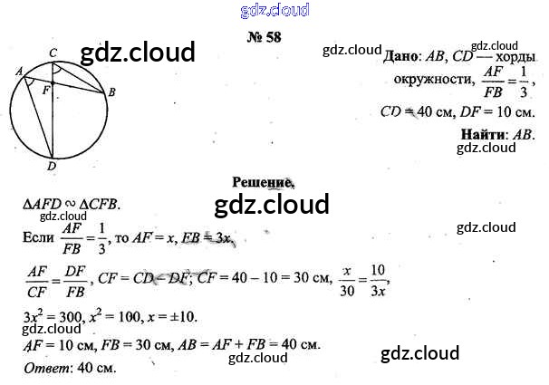 Ответ на задание 58 Учебник Геометрия за 9 (девятый) класс Шлыков 2012 онлайн и без номера телефона.
