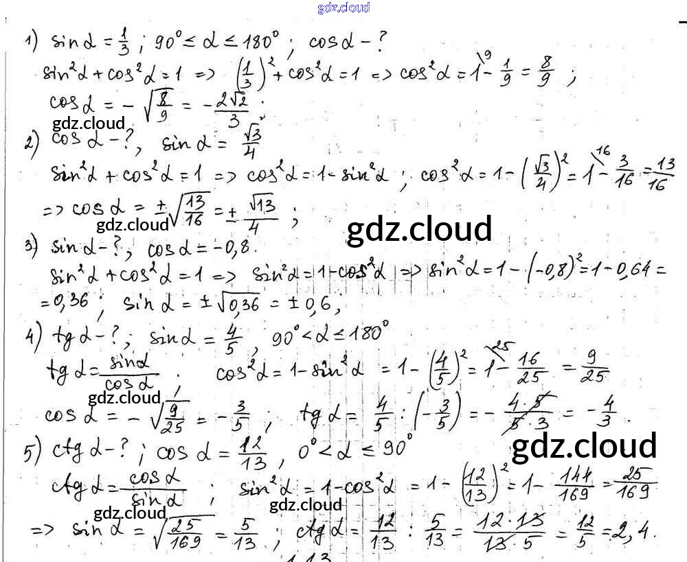 §1 Ответы к Главе 1. Решение треугольников по Геометрии 9 класс Учебник Мерзляк Углубленный уровень Вентана-граф