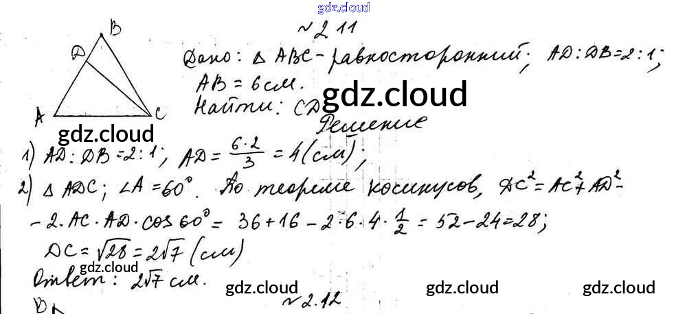 Ответ на задание 2.11 Учебник Геометрия за 9 (девятый) класс Мерзляк, Поляков Углубленный уровень 2019