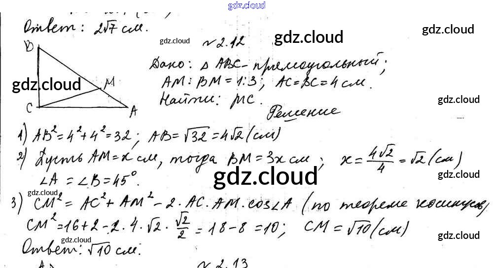 Ответ на задание 2.12 Учебник Геометрия за 9 (девятый) класс Мерзляк, Поляков Углубленный уровень 2019