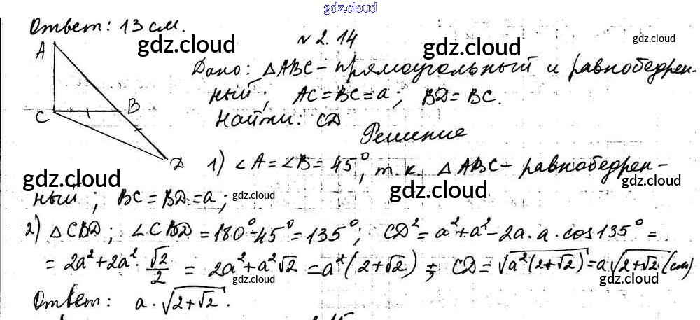 Ответ на задание 2.14 Учебник Геометрия за 9 (девятый) класс Мерзляк, Поляков Углубленный уровень 2019