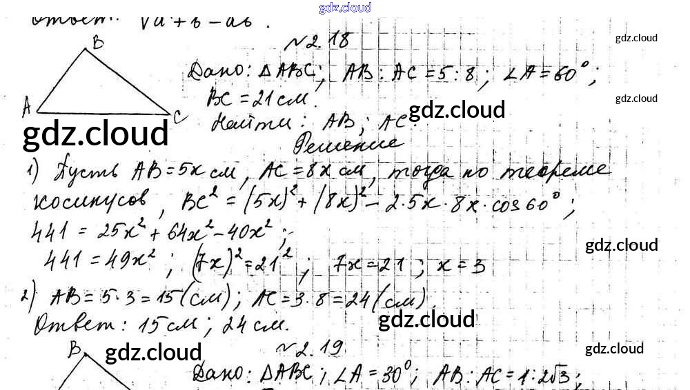 §2 Ответы к Главе 1. Решение треугольников по Геометрии 9 класс Учебник Мерзляк Углубленный уровень Вентана-граф