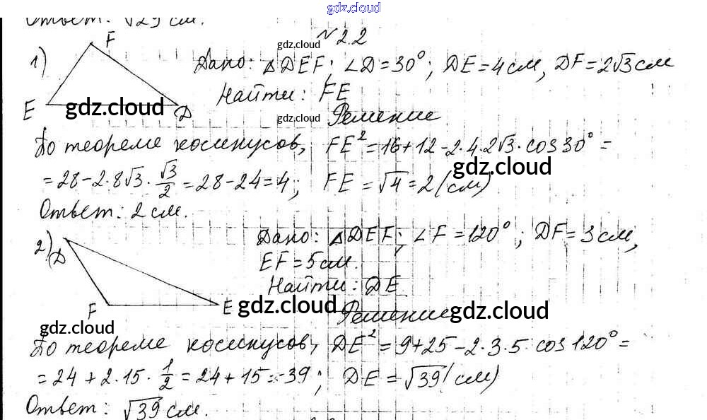 Ответ на задание 2.2 Учебник Геометрия за 9 (девятый) класс Мерзляк, Поляков Углубленный уровень 2019