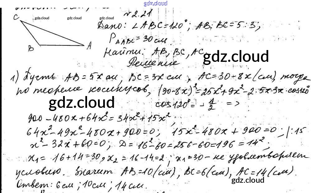 Ответ на задание 2.21 Учебник Геометрия за 9 (девятый) класс Мерзляк, Поляков Углубленный уровень 2019