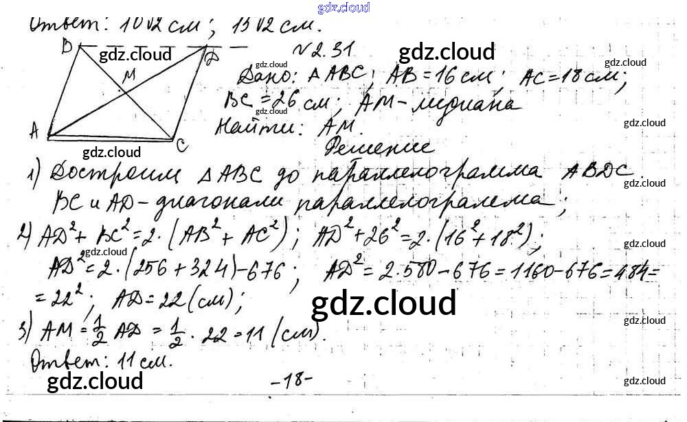 Ответ на задание 2.31 Учебник Геометрия за 9 (девятый) класс Мерзляк, Поляков Углубленный уровень 2019