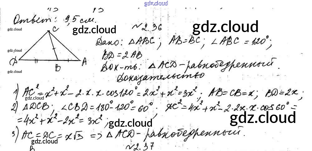 Ответ на задание 2.36 Учебник Геометрия за 9 (девятый) класс Мерзляк, Поляков Углубленный уровень 2019