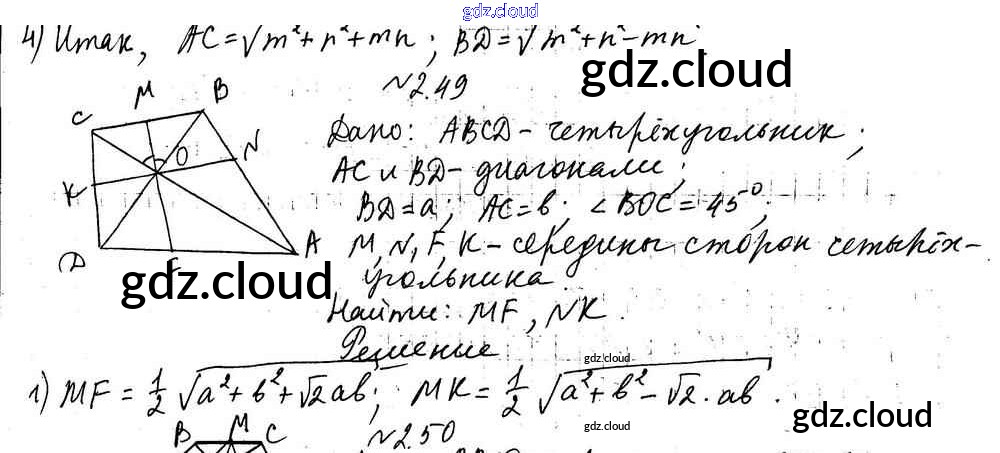 Ответ на задание 2.49 Учебник Геометрия за 9 (девятый) класс Мерзляк, Поляков Углубленный уровень 2019