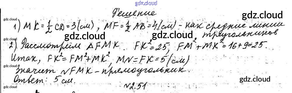 Ответ на задание 2.50 Учебник Геометрия за 9 (девятый) класс Мерзляк, Поляков Углубленный уровень 2019
