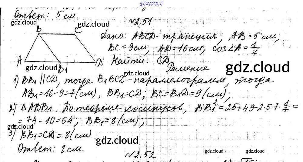 Ответ на задание 2.51 Учебник Геометрия за 9 (девятый) класс Мерзляк, Поляков Углубленный уровень 2019