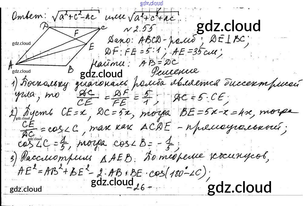 Ответ на задание 2.55 Учебник Геометрия за 9 (девятый) класс Мерзляк, Поляков Углубленный уровень 2019