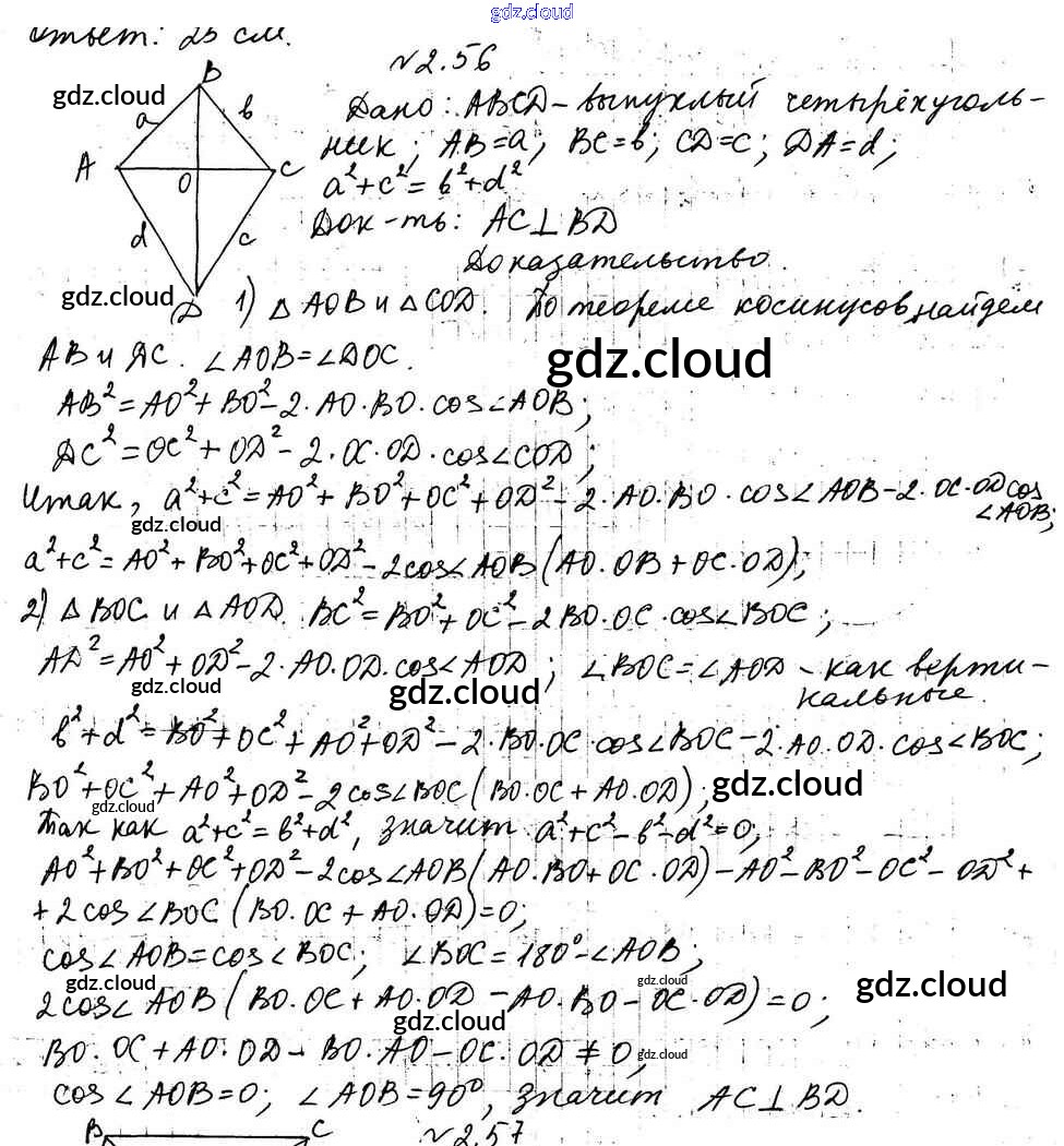 Ответ на задание 2.56 Учебник Геометрия за 9 (девятый) класс Мерзляк, Поляков Углубленный уровень 2019