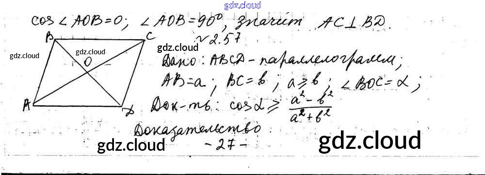 Ответ на задание 2.57 Учебник Геометрия за 9 (девятый) класс Мерзляк, Поляков Углубленный уровень 2019